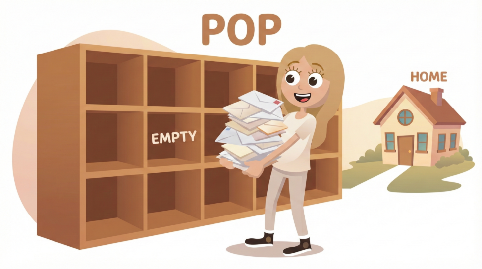 POPは、郵便局にある手紙を「すべて自宅(パソコン)に持ち帰る」方式です。