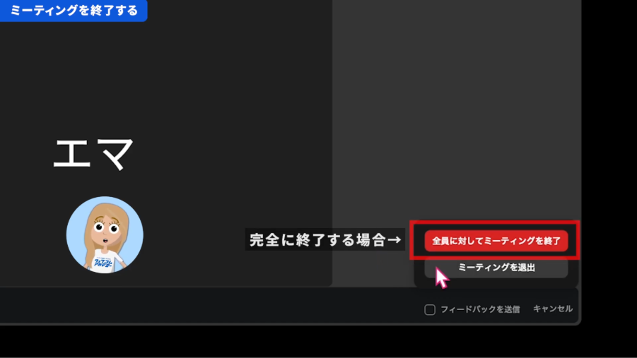 - 全員に対してミーティングを終了:会議そのものを終わらせます。