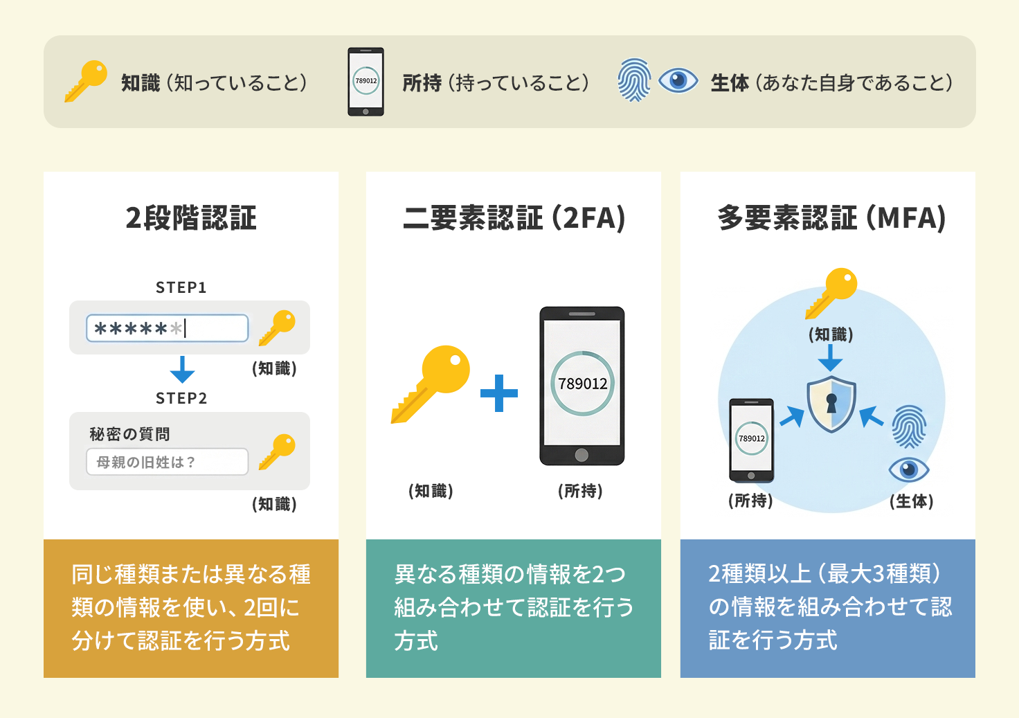 「2段階認証」「多要素認証」との違いは?おすすめの認証方法は?